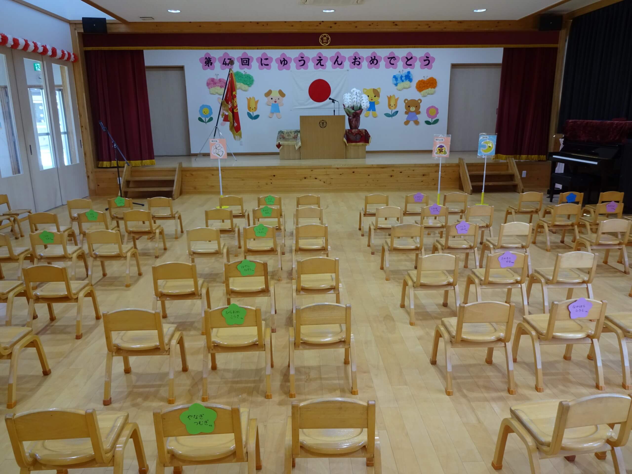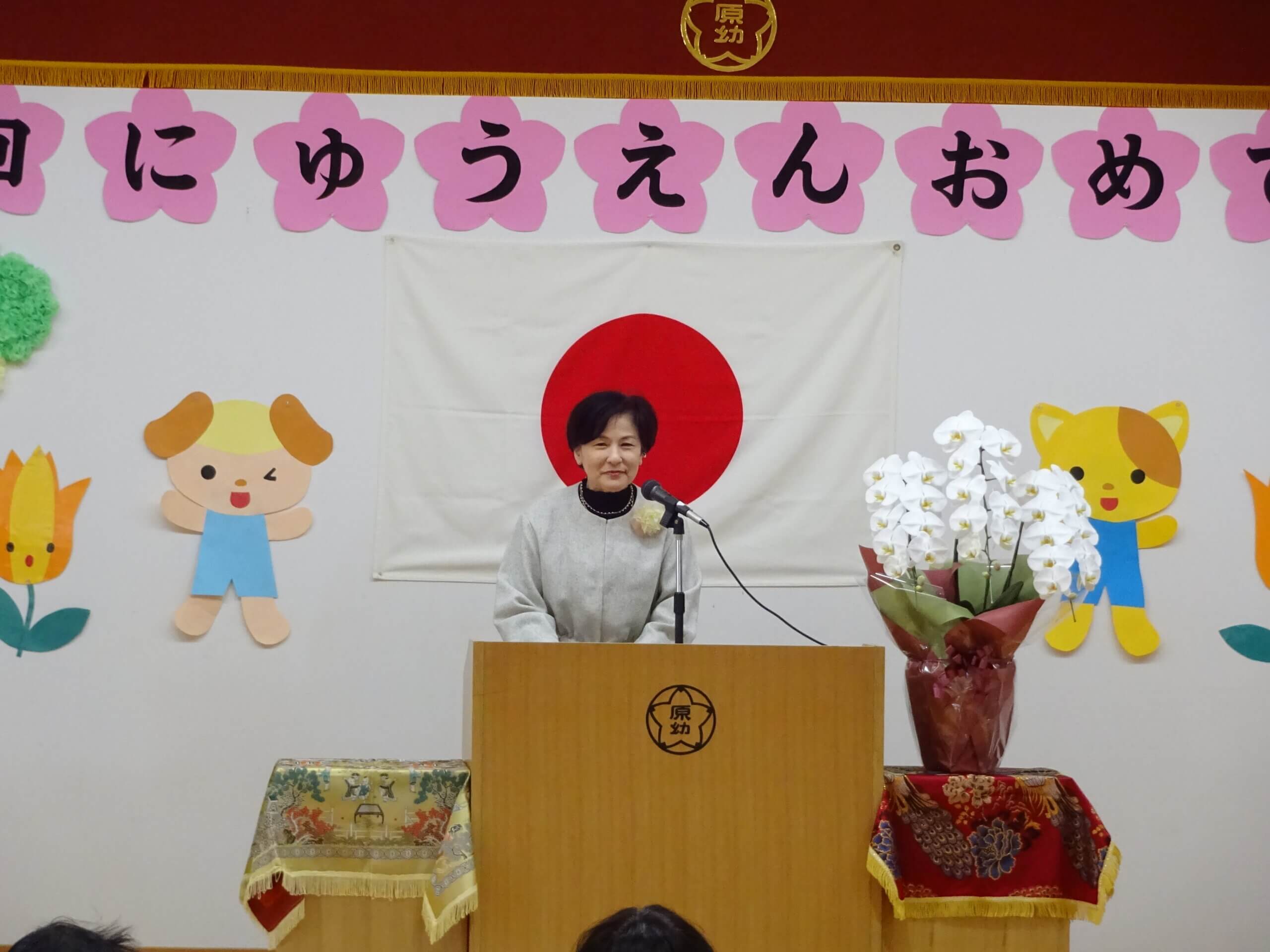 その後原中央幼稚園の教職員の紹介などを行い入園式が終了しました。